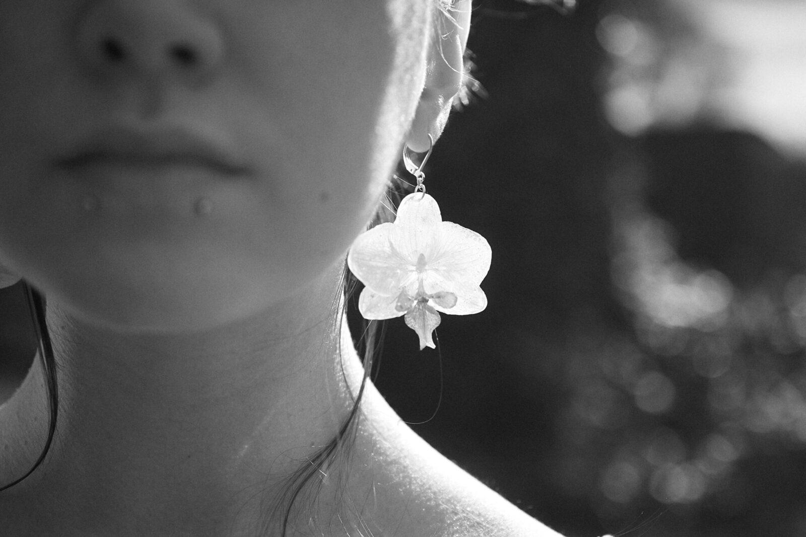 Kwiatowe kolczyki są wykonane z prawdziwych storczyków, które zostały zachowane w żywicy, doskonale oddając esencję każdego wyjątkowego kwiatu.