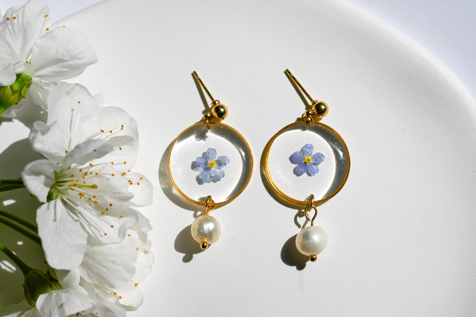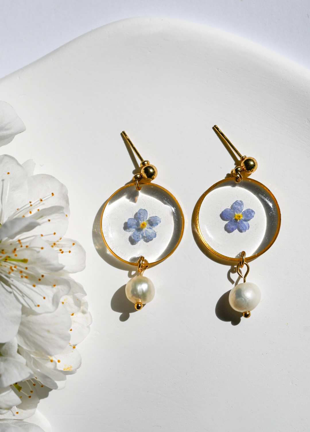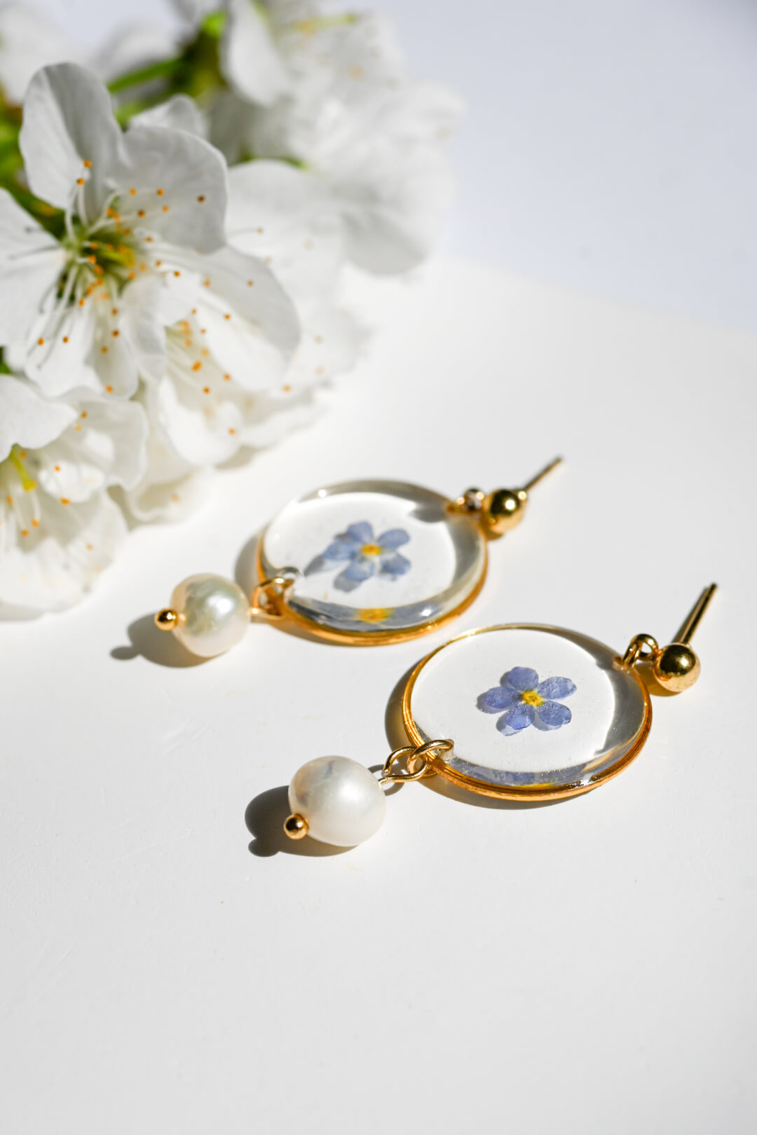 Kolczyki z niezapominajką i perłą słodkowodną