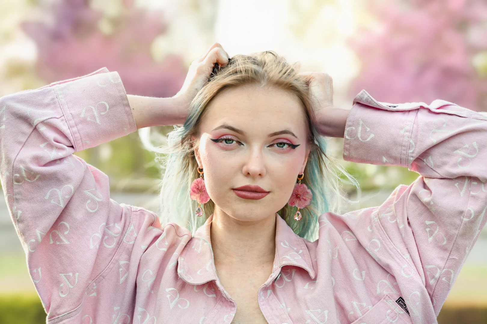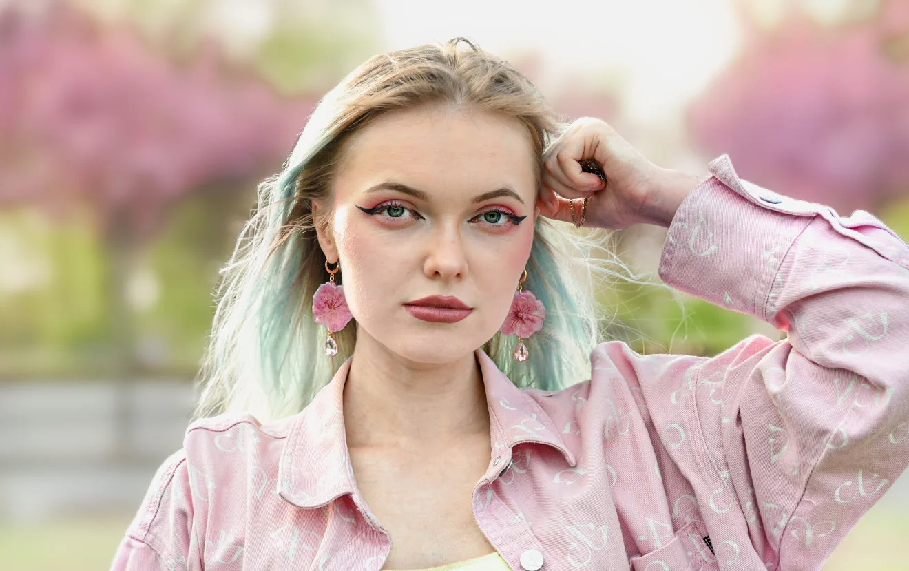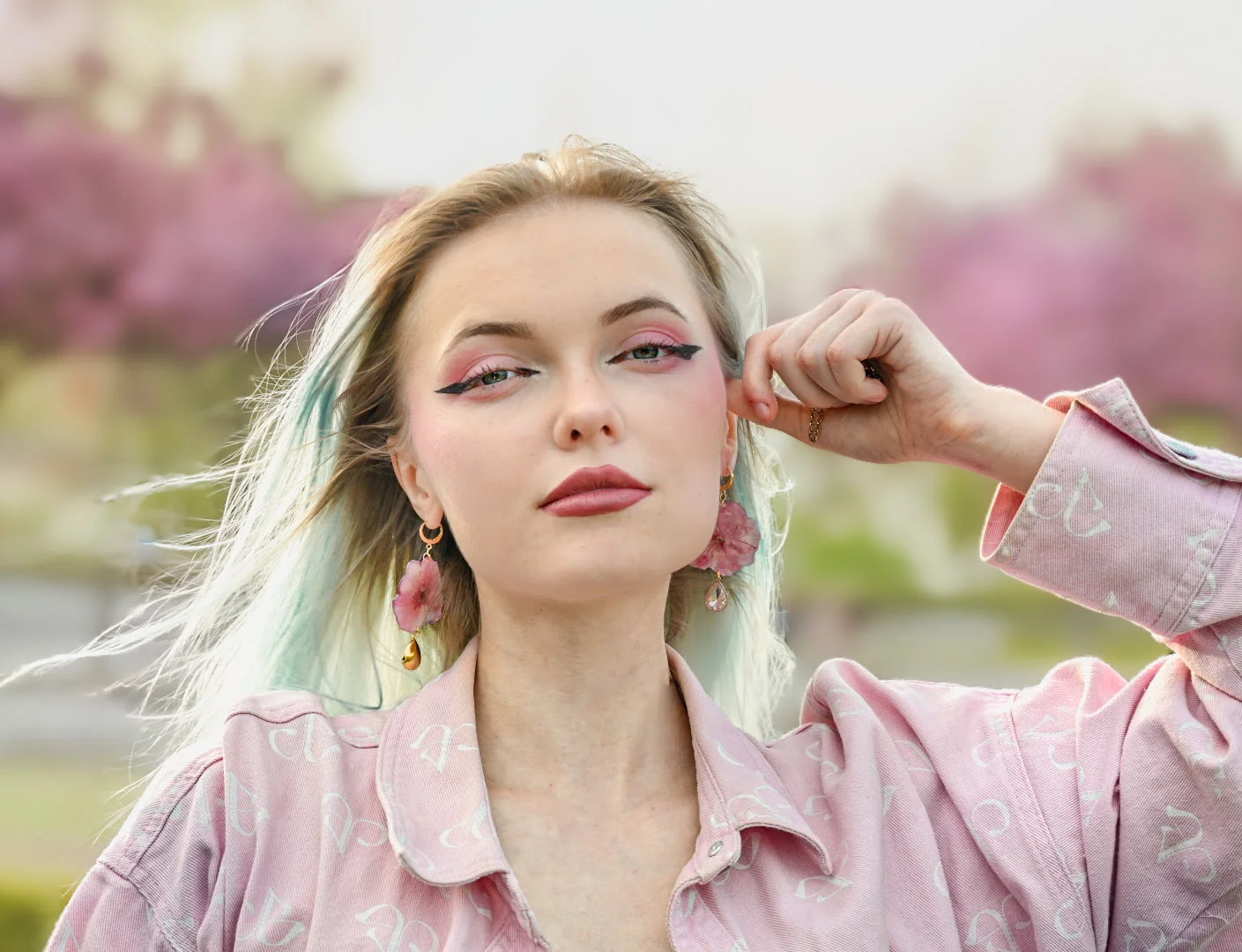 Różowy kryształ subtelnie odbija światło, dodając kolczykom romantycznego blasku.