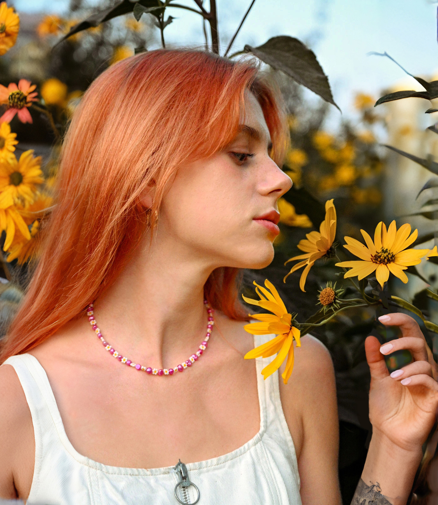 Naszyjnik z pereł słodkowodnych i stokrotek to elegancka biżuteria o wyjątkowym znaczeniu. Stokrotki symbolizują czystość, lojalność i nowe początki, czyniąc go idealnym upominkiem. Ma długość 38 cm + 5 cm regulacji, a metalowe elementy wykonano ze stali chirurgicznej w kolorze złotym lub srebrnym. Całość dopełnia charms z wygrawerowanym logo marki. To doskonały prezent dla mamy, przyjaciółki lub wyjątkowy dodatek dla samej siebie.