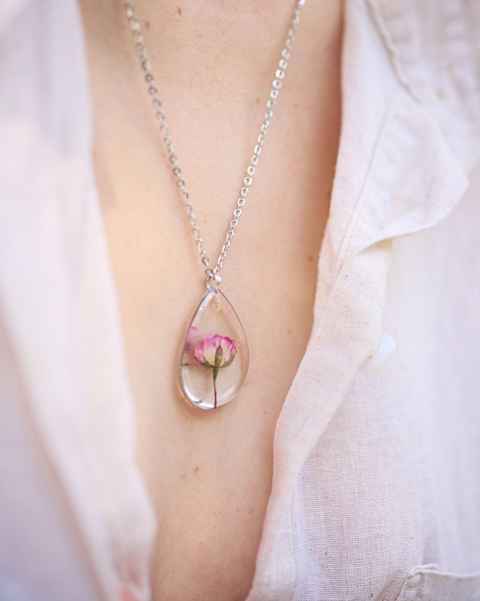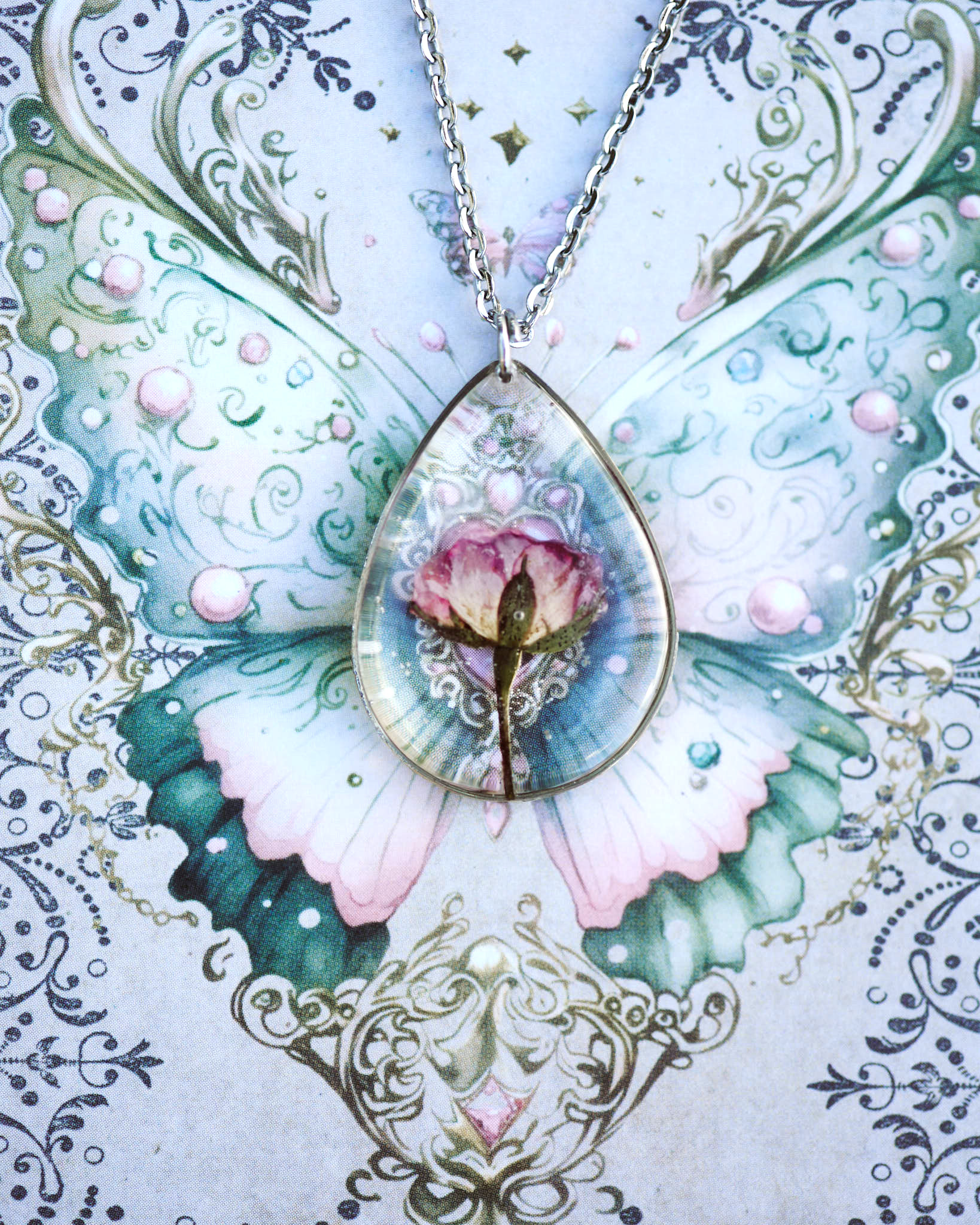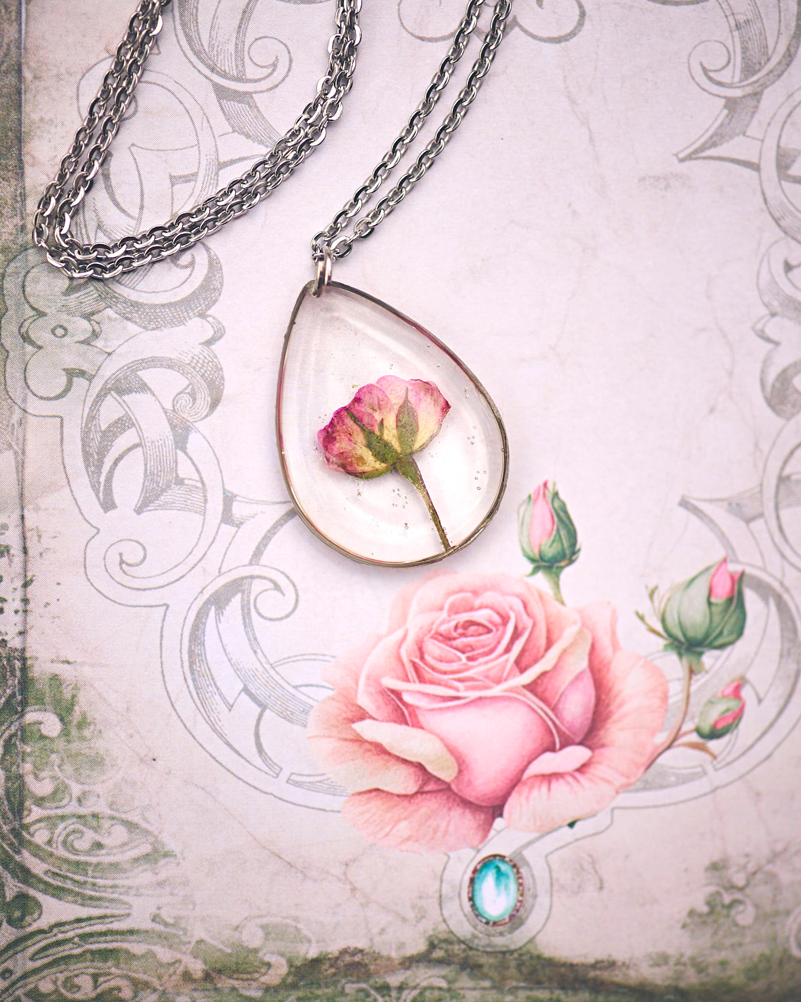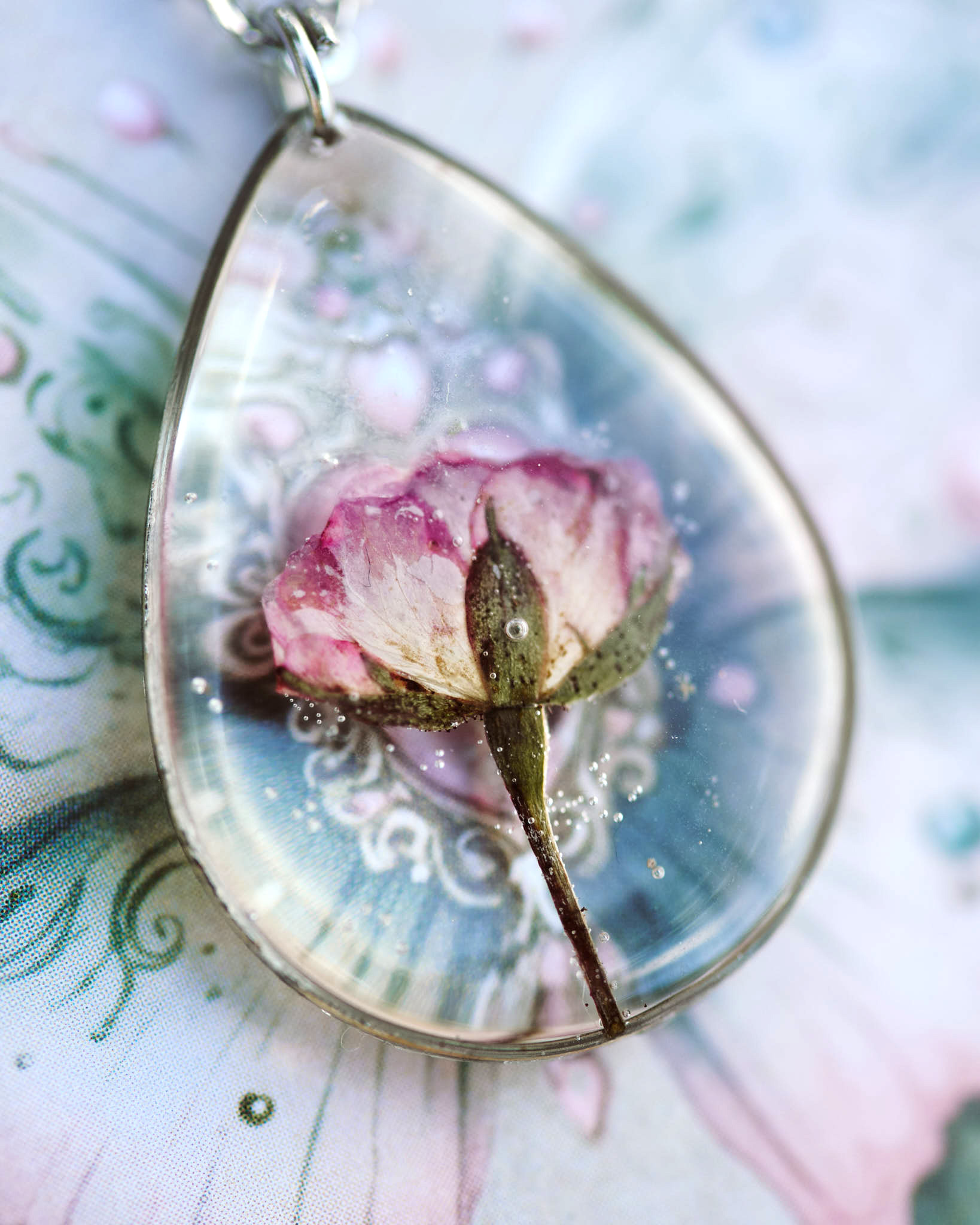 Materiał: Suszona róża, żywica epoksydowa, stal chirurgiczna