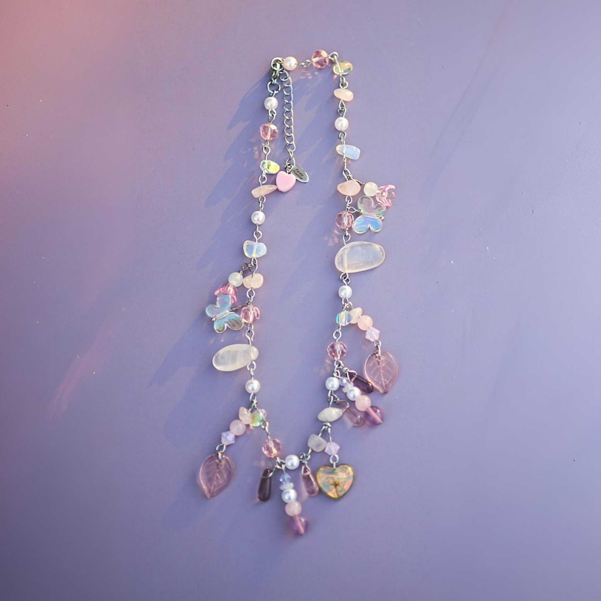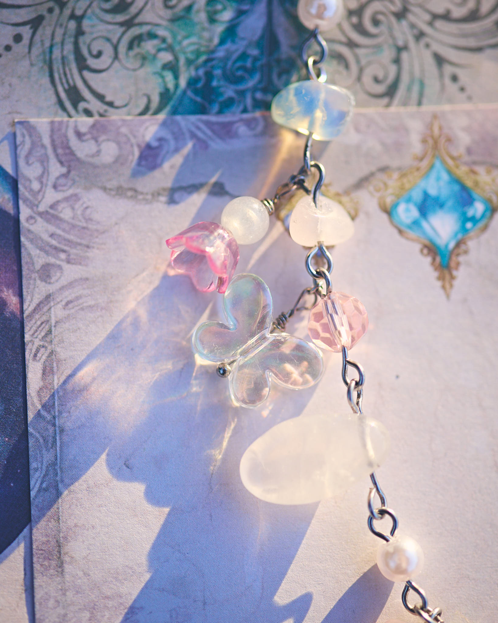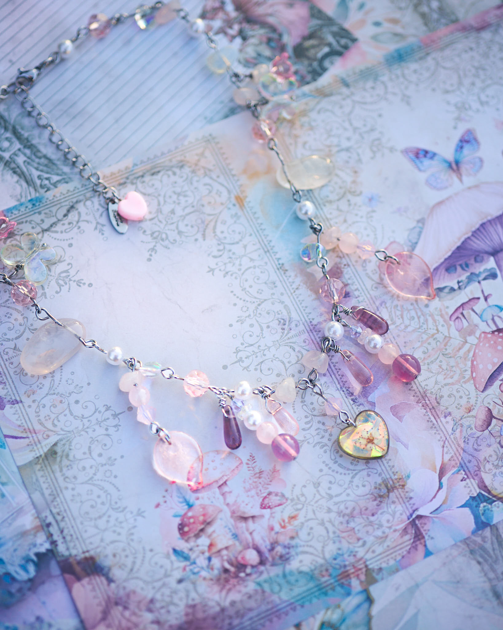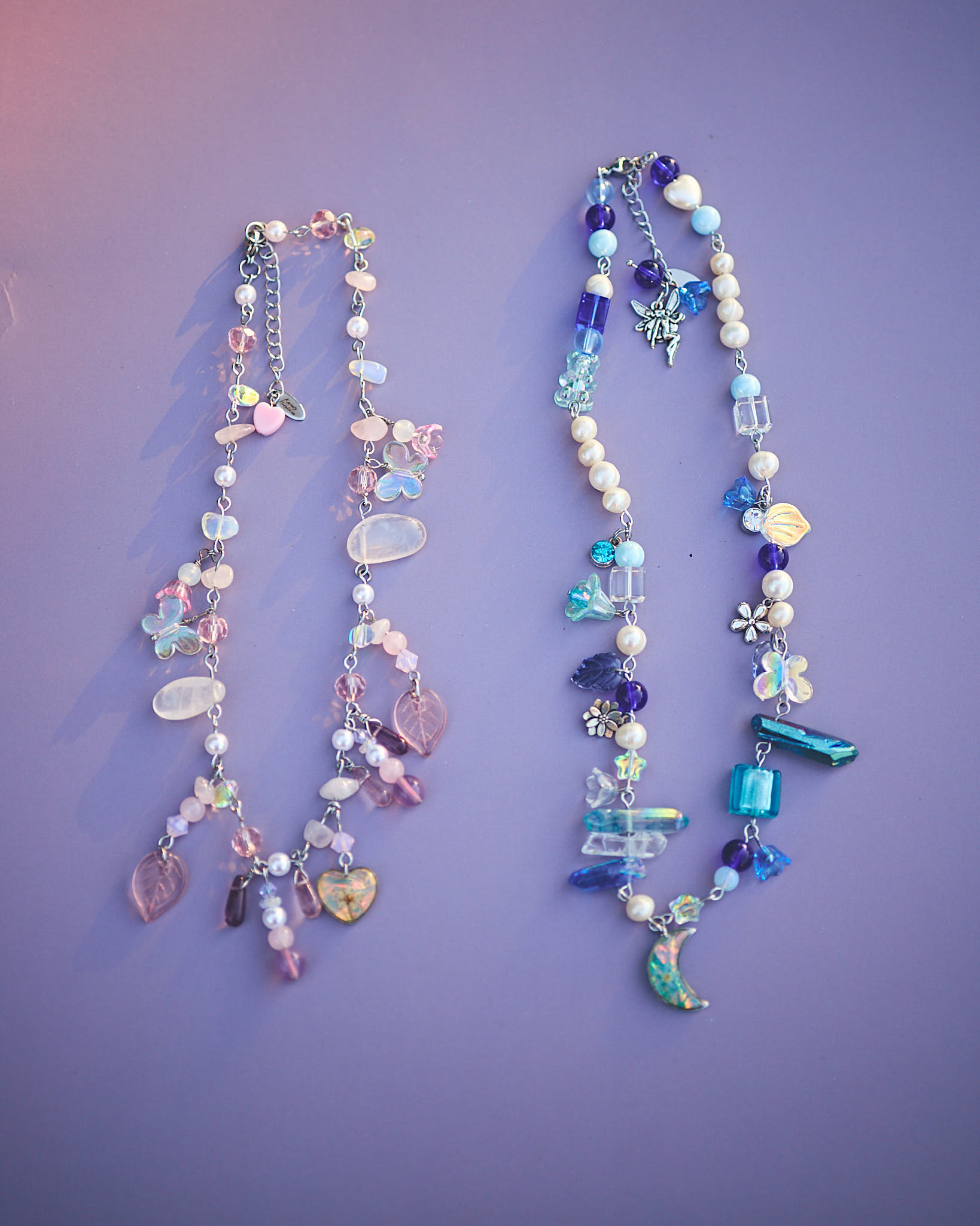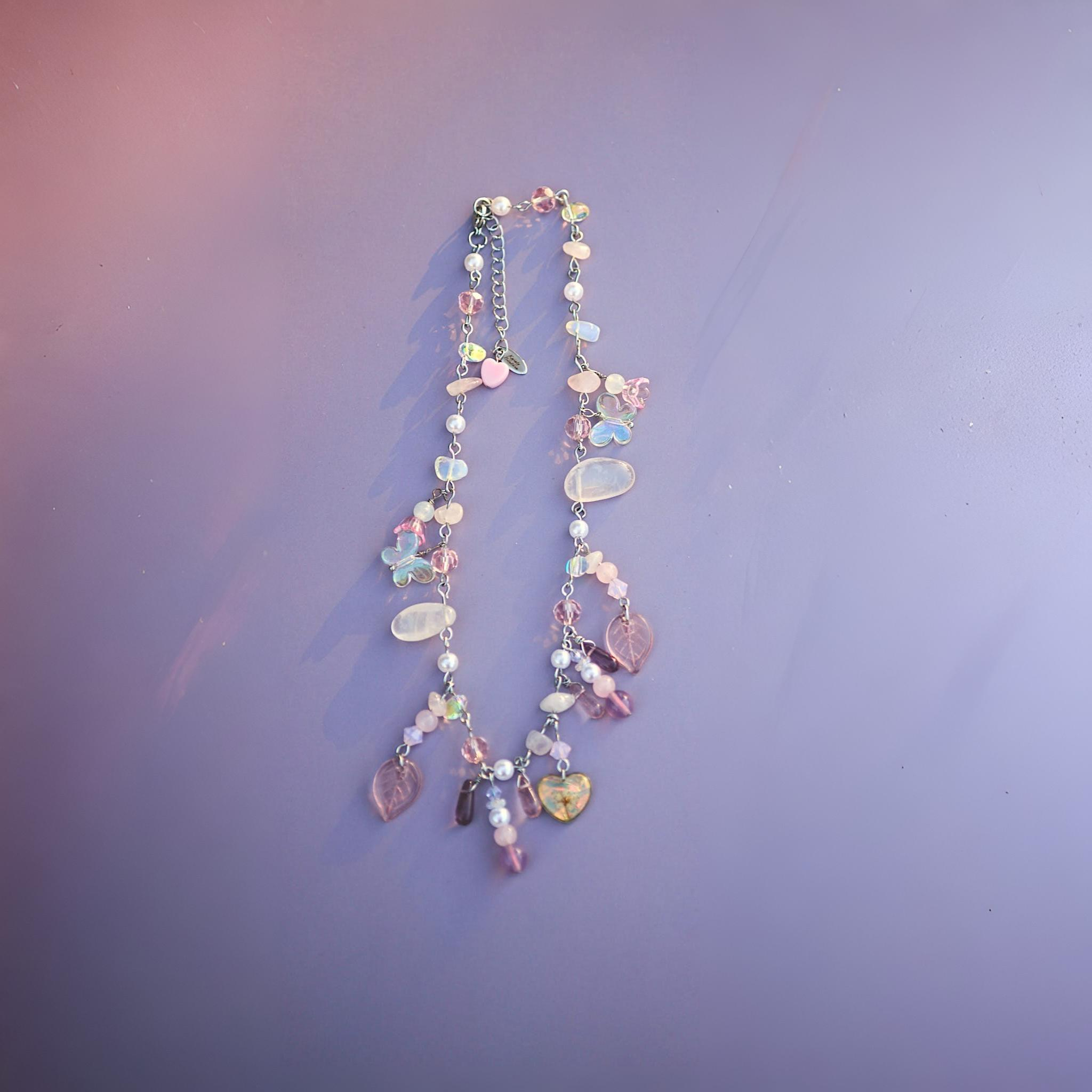 Zanurz się w pastelowym świecie, w którym różowe listki tańczą z tęczowymi motylkami, a każdy koralik opowiada własną, zaczarowaną historię. Różowa Kolia Wróżki to biżuteria stworzona dla tych, które noszą w sobie odrobinę magii — dla księżniczek, wróżek i marzycielek kochających delikatny blask.